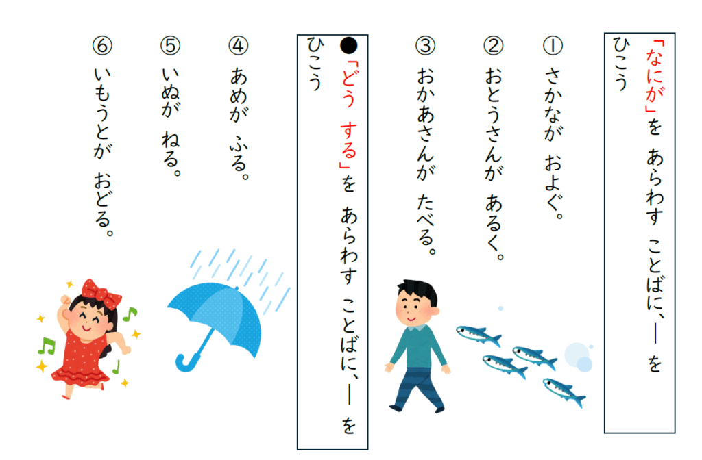 主語と述語は、文の骨組みとなり、お互いに結びついて意味をなします。