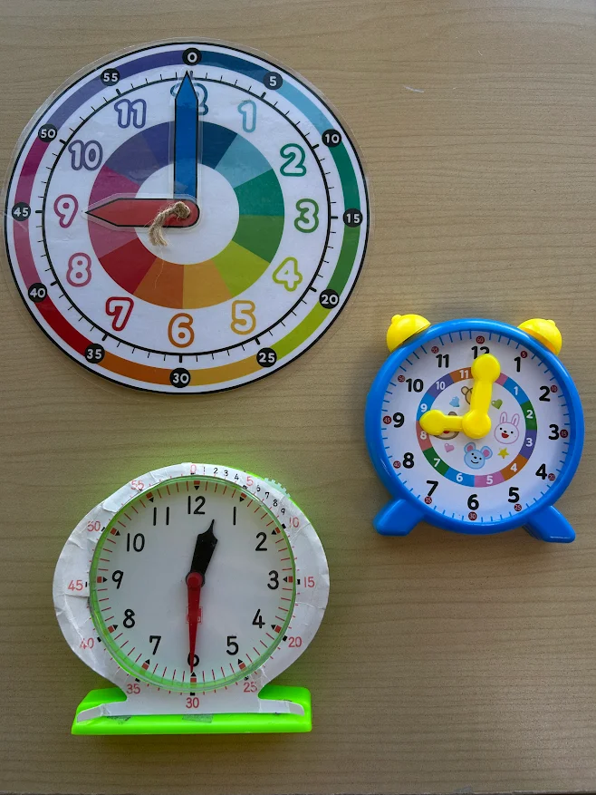 この活動を通じて、「この針の位置になったら、この活動が始まる」という視覚的な関連付けを強化し、時計が自分たちの活動と結びついていることを体験的に理解出来るようになります。