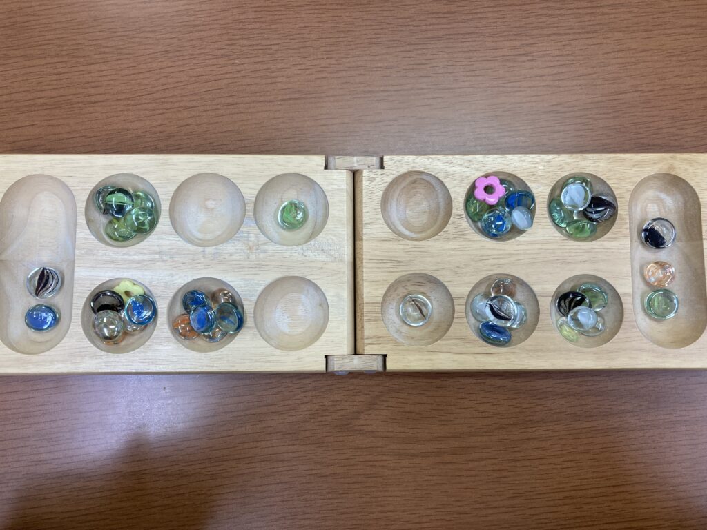 マンカラは先程の区分で言えば“2人で遊ぶ・勝敗がつく・カードを使わない”ゲームとなります。