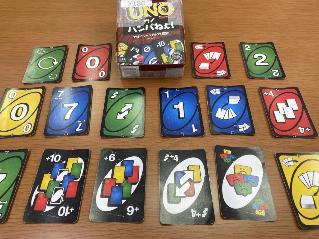 ルールはUNOと大きな違いは無いですが、“はんぱねぇ”このUNOには〈ドロー10〉〈リバースドロー4〉〈色カードをまとめて捨てる〉等普通のUNOではなかなか見る事の無い効果カードが入っています。