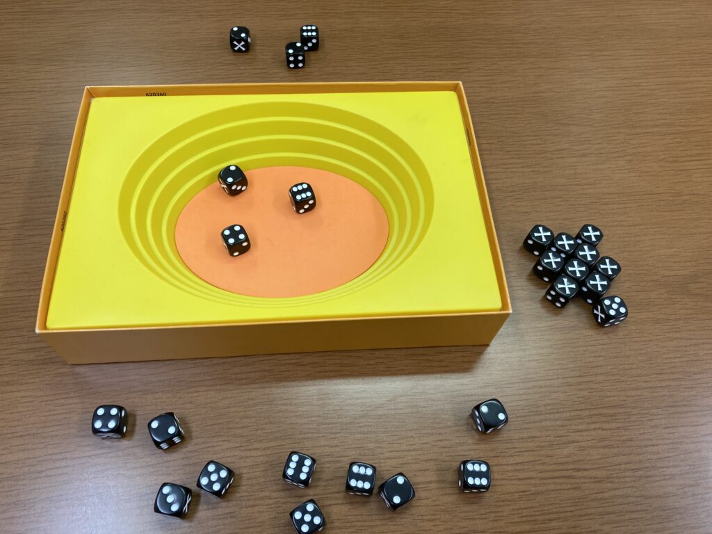こちらはサイコロを振って場に出た目が揃えば、揃った目のサイコロをゲットする事が出来るというゲームです。