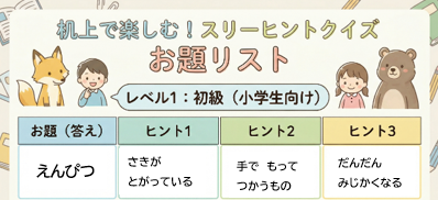 今回は、日常で簡単に取り入れられるスリーヒントクイズをご紹介しました。