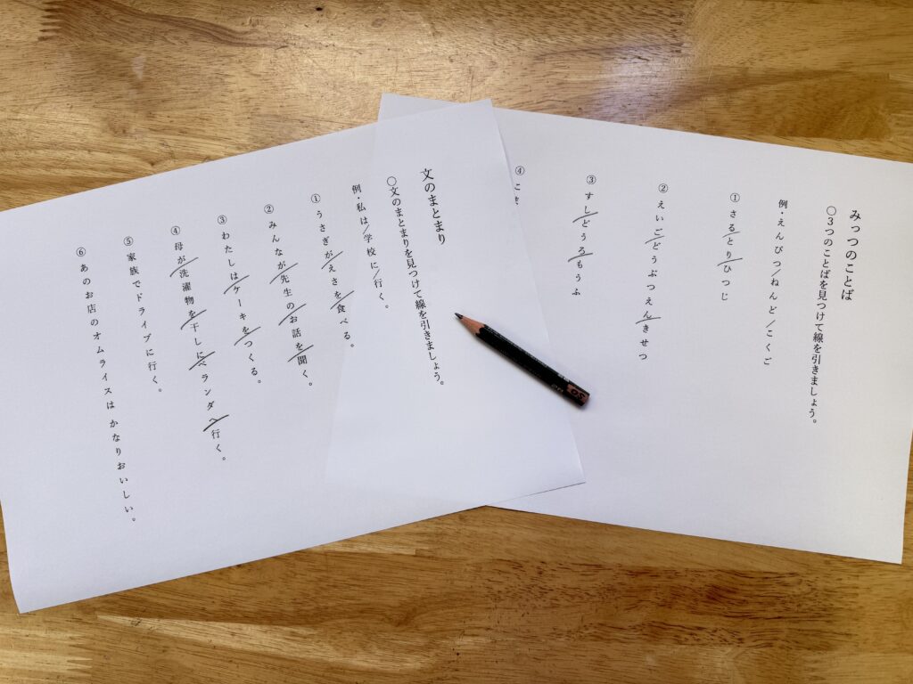 藤沢第2教室では学習教材に文節ごとに線を入れて区切るプリントに取り組んでいただいています。