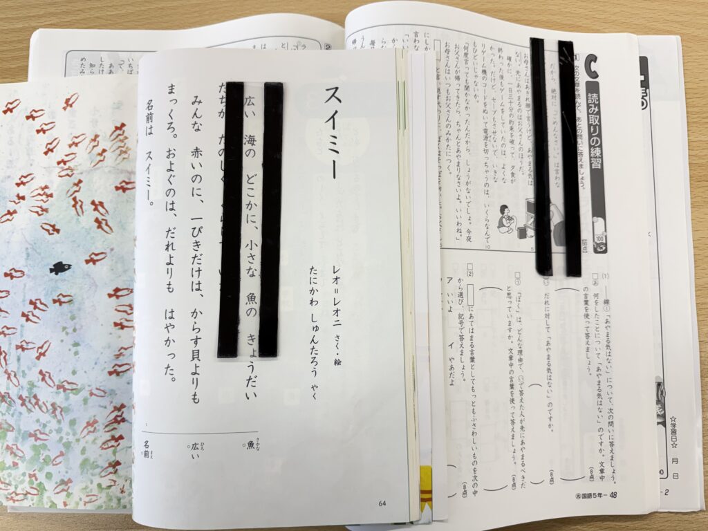 藤沢第2教室では指でなぞりながら文章を読む以外に、紙などで文章の情報を少なくする方法やリーディングトラッカーという道具を使って飛ばし読みを防ぐ方法があります。
