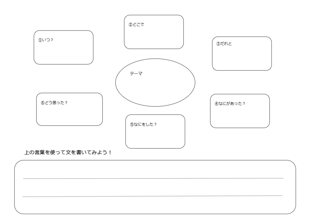 プリント中央のテーマに、最近お子さま自身が経験したことなどを書いていきます。