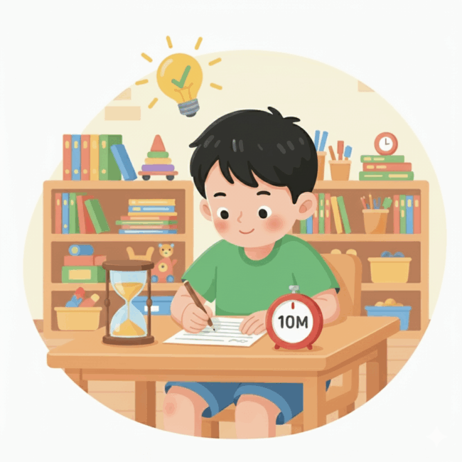 ➡見通しを持たせることにより、行動しやすくなるお子様は多いです。また片付けを始める時間を決めておくことにより、お子様自身で時計をみながら計画的に取り組む習慣をつけていきます。