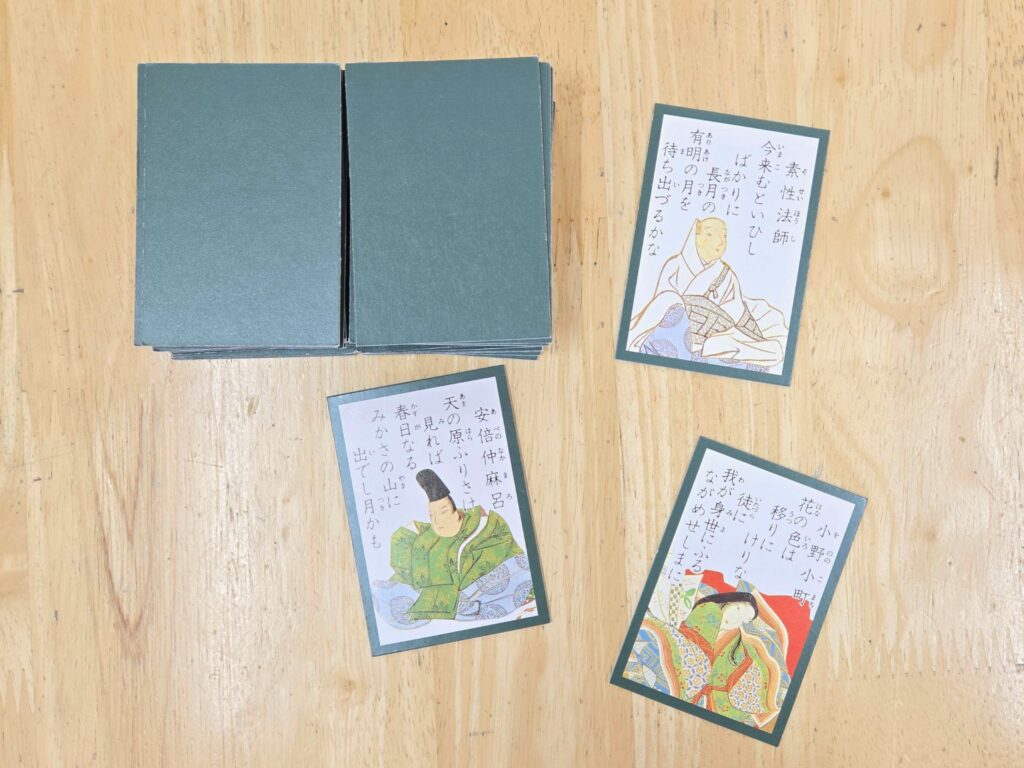 百人一首の札を使い、今回はかるた形式ではなく、シンプルで奥が深い「坊主めくり」を楽しみました。