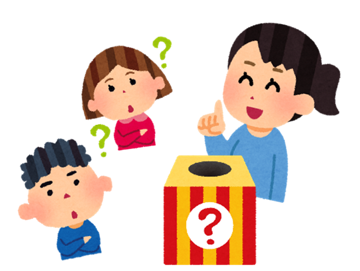 指導員が箱の中身をこっそり見て、ヒントを1つずつ出します。そのヒントを頼りに箱の中身を当てるゲームです☆