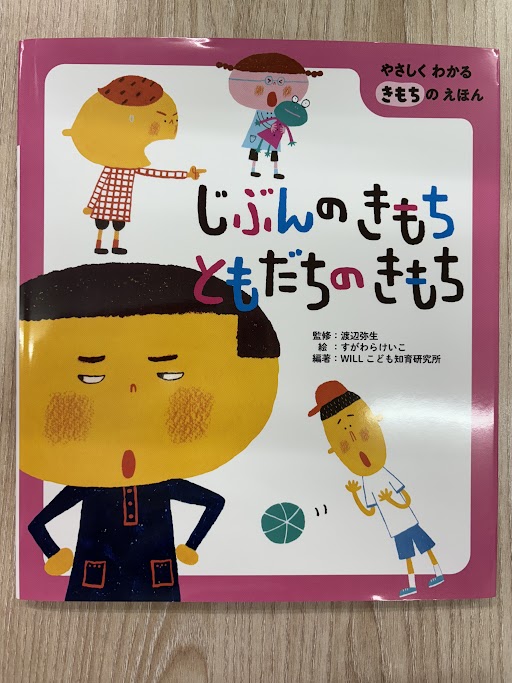 絵本『じぶんのきもち ともだちのきもち』を読み、「これをしたらお友達はどんな気持ちになるかな?」と、様々な場面を想定して考えていただきました。