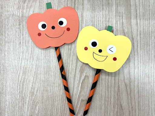 ハロウィンに向けて、折り紙や画用紙を使い「かぼちゃのステッキ」を制作しました!