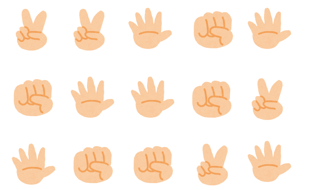 ポイント 勝つ手の形を出すのが難しい場合は、まずは「あいこ」(同じ手の形)を出す方法でも大丈夫です。