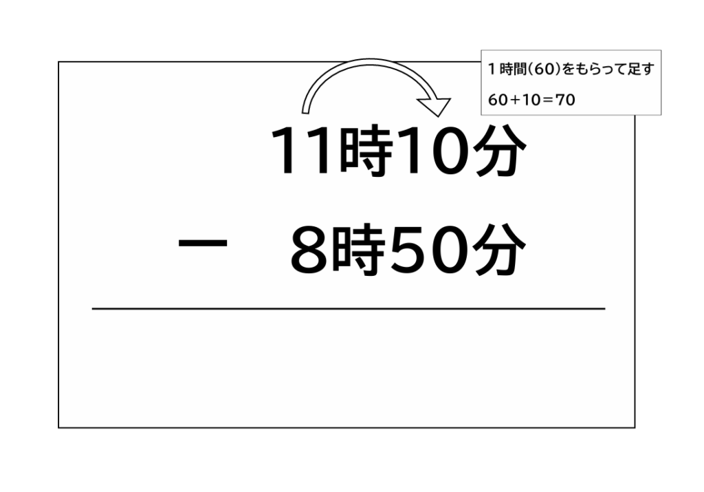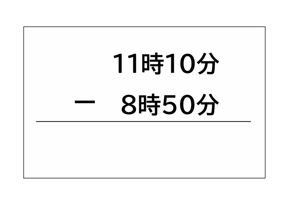 ただ、「10分-50分」はできないので、「11時」から1時間(60分)をもらって、10分に足します。