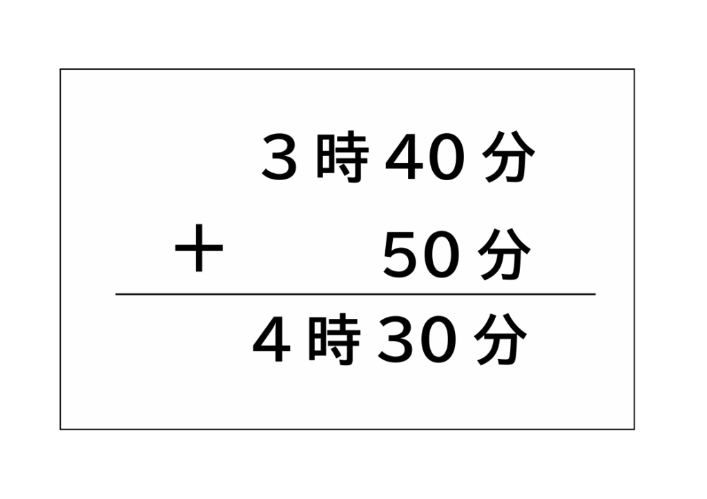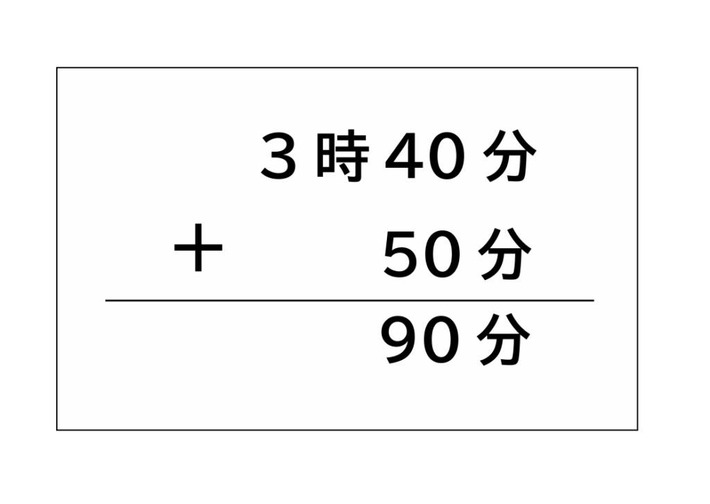 40分と50分を足し算すると、90分となります。