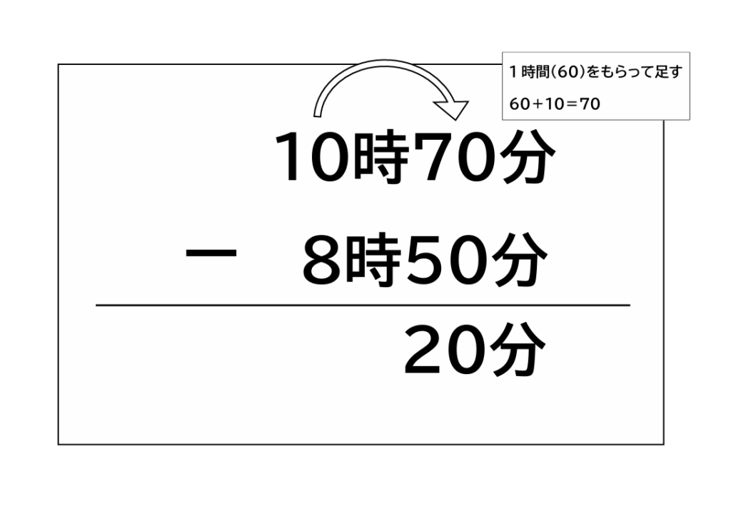 これで引き算ができるようになったので、「70分-50分」をします。